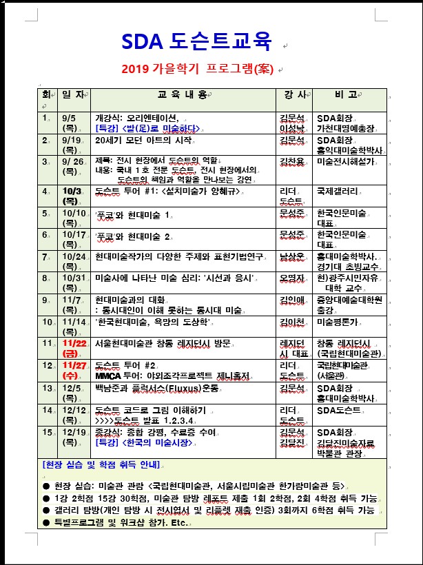 SDA도슨트교육 2019 가을학기 안내