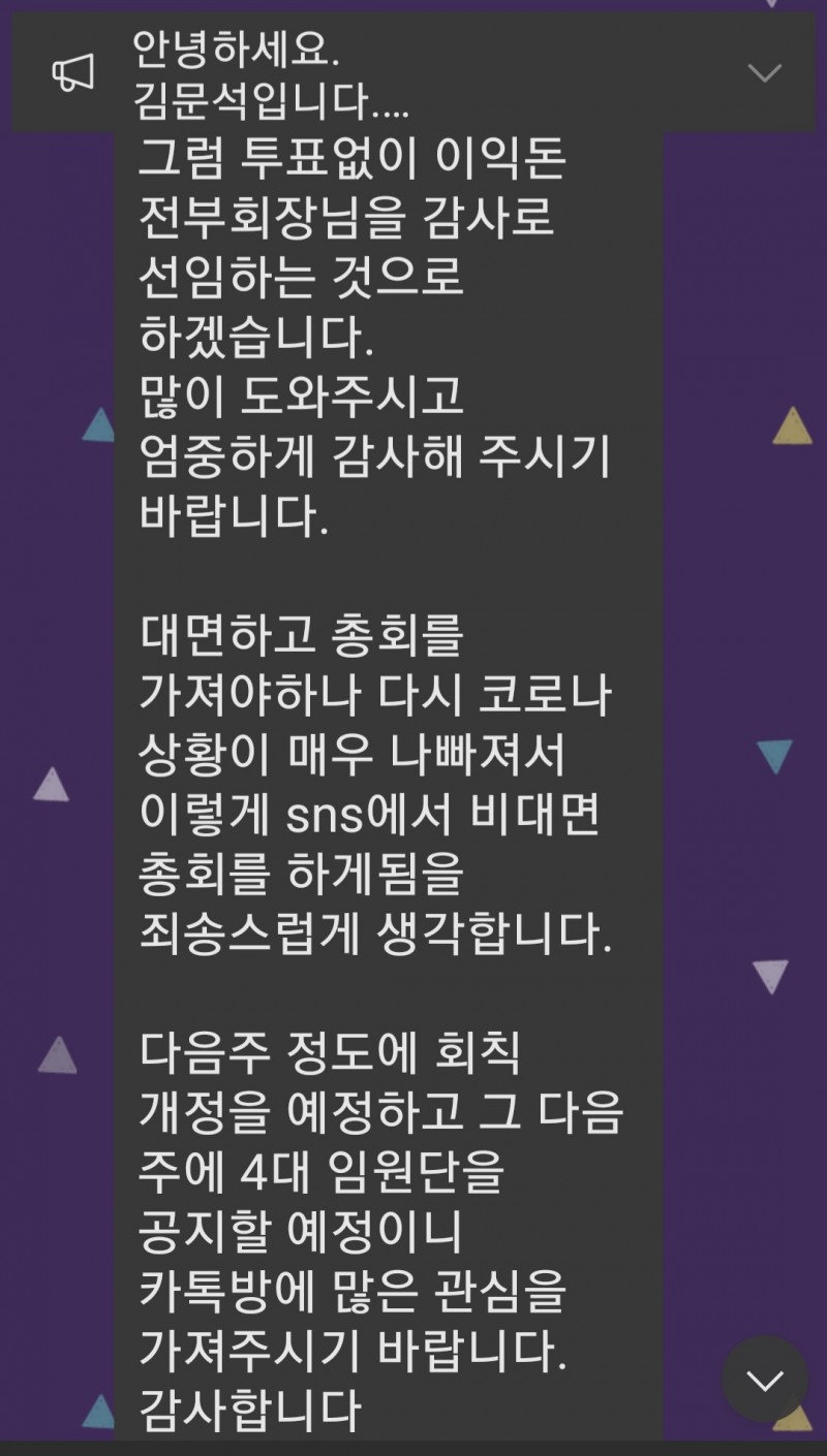 제 4대 회장 선출 및 신임 감사 선임 결과 공지