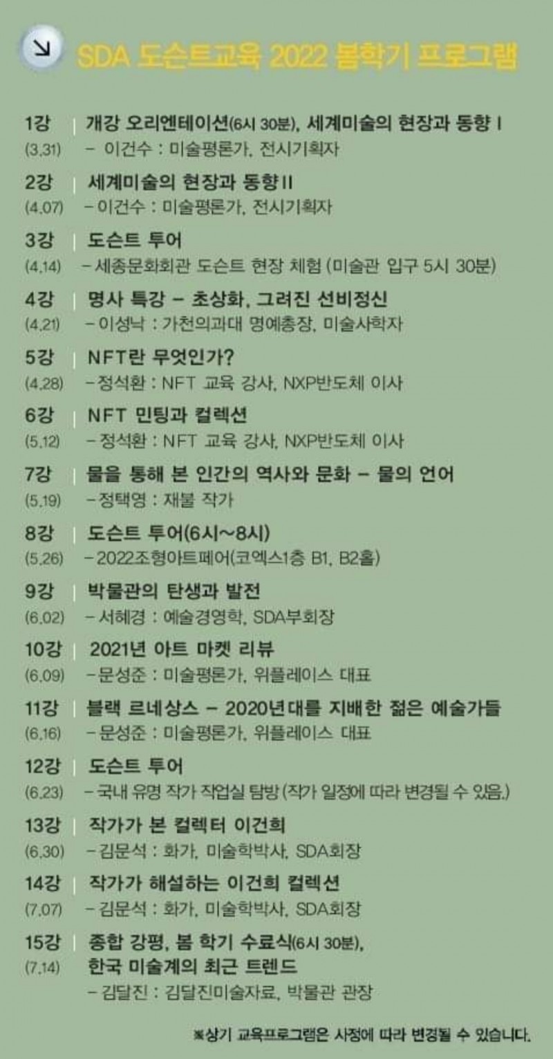 SDA도슨트교육 2022 봄학기 강좌 개설