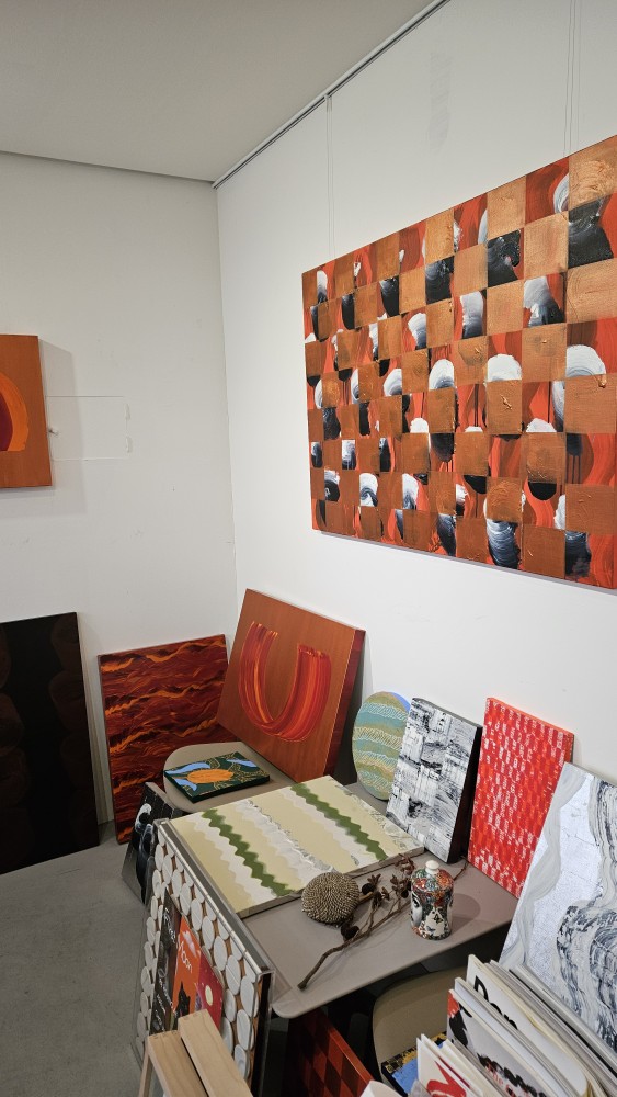 아늑하고 다채로운 느낌을 주는 작업실이었는데요, 직접 작가님의 작업실을 방문해보니 감회가 새로웠습니다. 따뜻한 봄날, 물감의 향기가 가득한 아틀리에에서 다양한 문답을 통해 작가의 작품세계를 엿볼 수 있는 좋은 자리였습니다.