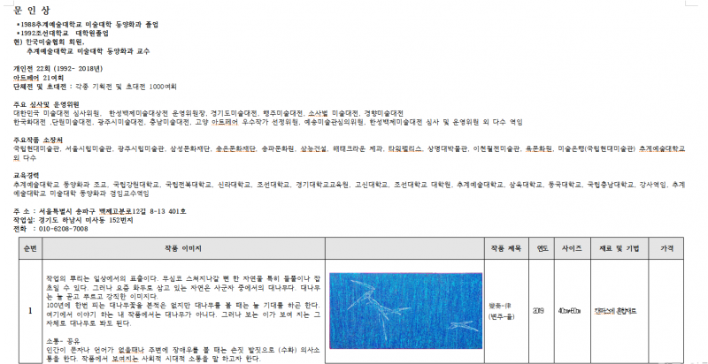 문인상 작가입니다.