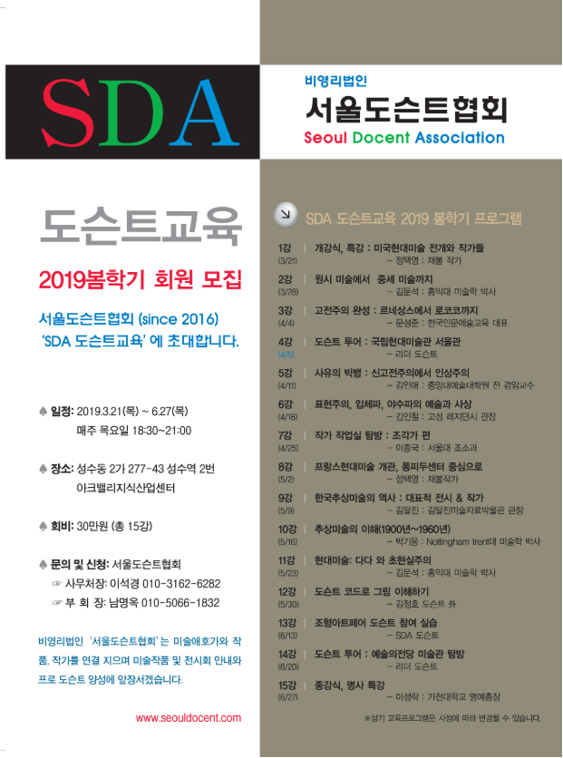 SDA 도슨트교육 2019 봄학기 종강 특강(6/27) 안내